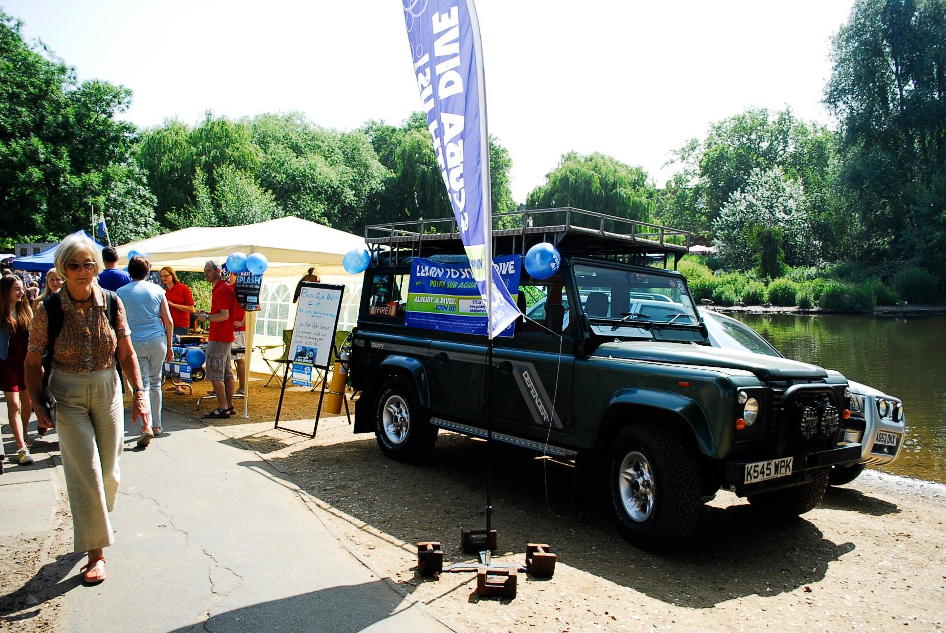 So early on Saturday morning of the 13th, Darren Jones (Boat Officer) and John Heagney (D.O) picked up the club RHIB and made our way to Barnes. The festival organisers had marked out an area the size of a small table for our pitch to be set up in, needless to say, they didn’t quite expect us to have a RHIB & trailer, a 8m x 5m gazebo, and two 4 x 4 Land Rover’s.