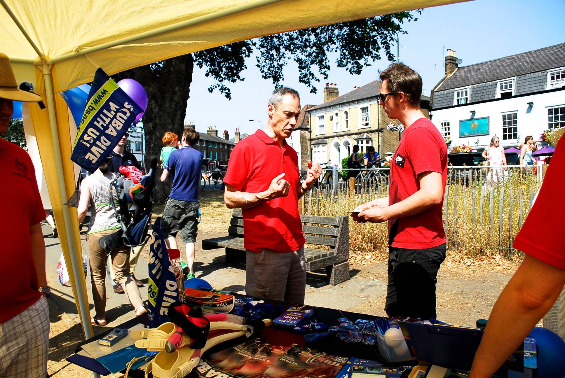 As you can imagine, this also draws in people who can afford to live in such eloquence, especially so close to the hub of London. So when we were asked by the committee of the Barnes festival if we would like to set up a stand there, we jumped at the chance to promote our branch and the BSAC. Our branch is situated in the neighbouring borough of Putney & Wandsworth, only a five minute drive away, and is in an ideal catchment area for new members to the club.