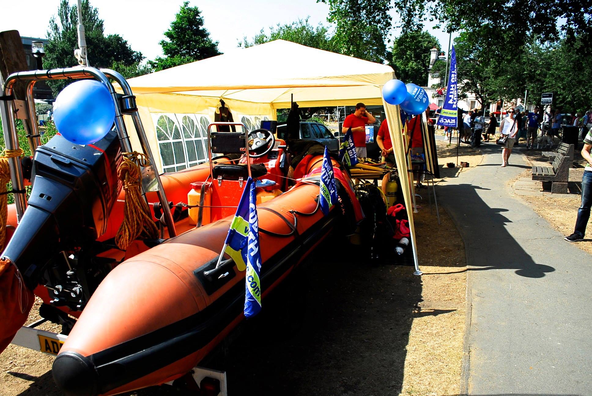 So early on Saturday morning of the 13th, Darren Jones (Boat Officer) and John Heagney (D.O) picked up the club RHIB and made our way to Barnes. The festival organisers had marked out an area the size of a small table for our pitch to be set up in, needless to say, they didn’t quite expect us to have a RHIB & trailer, a 8m x 5m gazebo, and two 4 x 4 Land Rover’s.