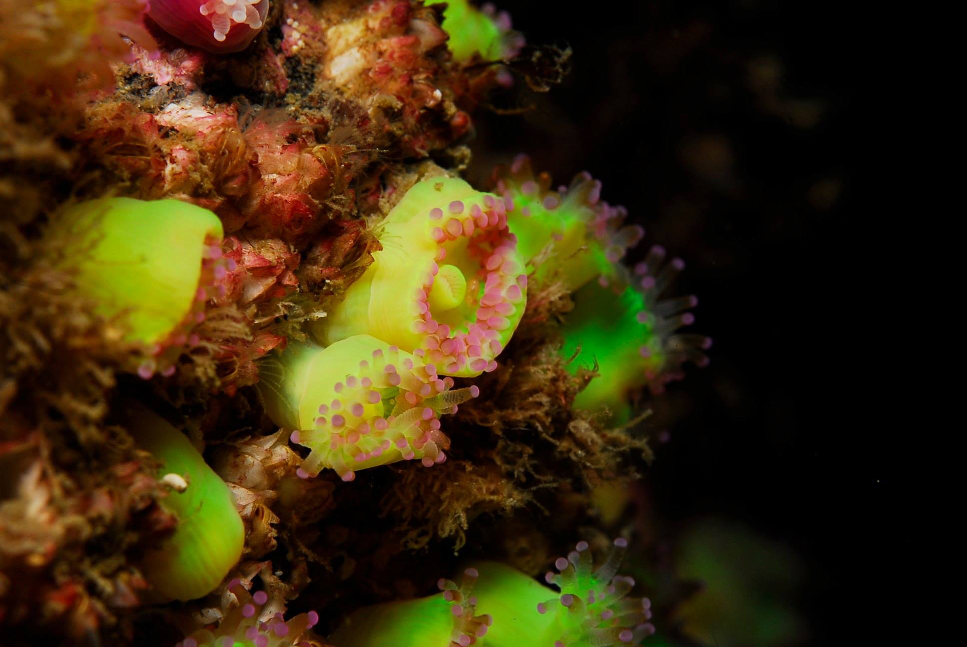 Tim, Michal, Philippa, Brian John and I had 2 very nice days of diving down the Lizard peninsular from the Porthkerris dive centre boat, Celtic Cat, a very nice boat. Fast, stable, surprisingly spacious and equipped with a unique 2-divers-at-a-time lift. And the lunch was way above average. We all got 5 dives in, Tim and Michal got 6 by starting on Friday afternoon while the rest were stuck on the M5 or detouring around the M5. On Sunday in particular the sea was flat calm and glassy. It gets no better. We dived 3 wrecks and 2 reefs, one a shore dive from the pebble beach. The visibility was from good to very good, the water comfortable and sea-life mostly wrasse. Wrasse are pretty colourful so no complaints there.